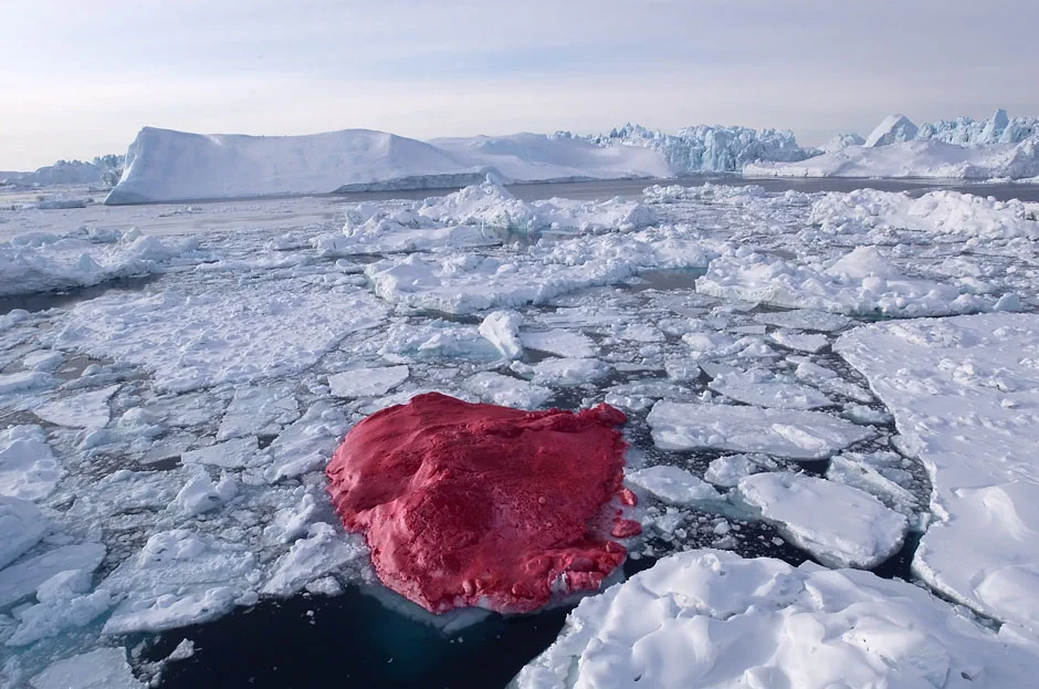 In 2004 Evaristti travelled to Greenland armed with red food colouring with the intention of establishing a provisional Pink State by painting an iceberg in Ilulissat Ice Fjord.